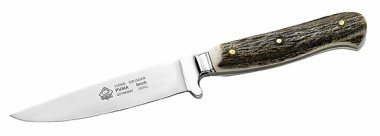 Original Solingen! Das Puma Jagdmesser, Modell Bock, wird in der Klingenstadt gefertigt und überzeugt mit sorgfältiger Verarbeitung. Die Klinge besteht aus dem rostfreien Stahl 1.4034. Für die Griffschalen wird ausgewähltes Hirschhorn verwendet. Der Übergang vom Griff zur Klinge ist als Handschutz ausgearbeitet. Inklusive einer Leder-Steckscheide mit Metallbeschlägen.